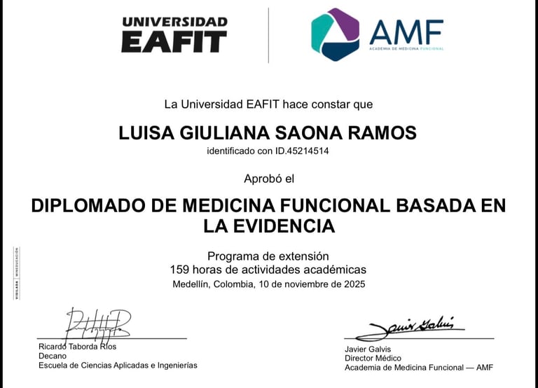 Aquí puedes ver mi diploma en Osteoporosis y mi diploma en Medicina Funcional, reflejo de mi compromiso con la salud integral.